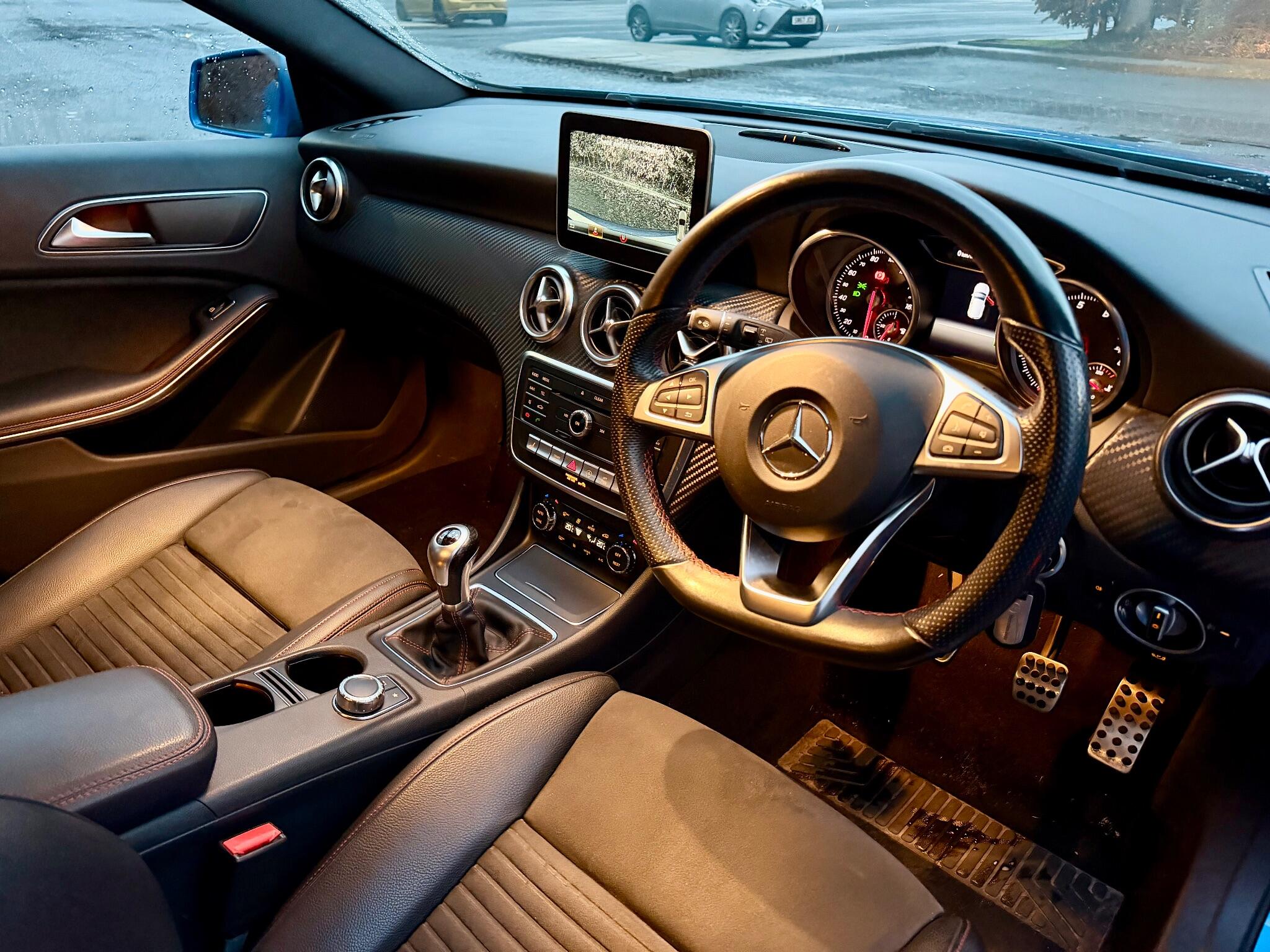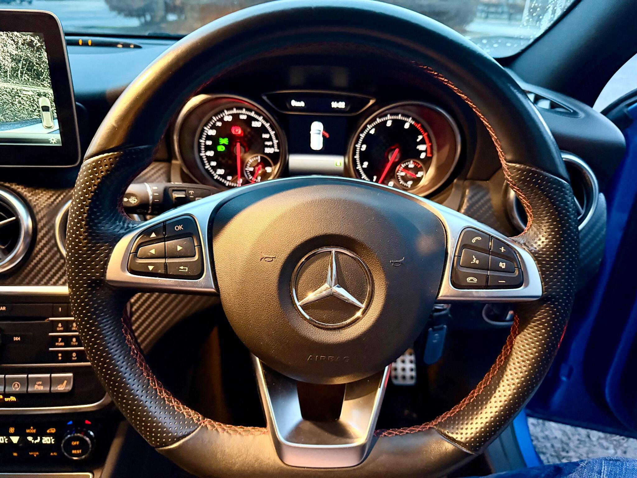 This 2016 Mercedes Benz A Class A180 AMG Line boasts exceptionally low mileage for its age, having covered just 36,500 miles. This Euro 6 compliant 1.6 litre petrol model has had only two owners and comes with the desirable AMG Line trim and Executive package. Inside, you'll find the AMG Exclusive package featuring stylish black and red perforated leather upholstery with contrast stitching, heated front seats for added comfort, and Thermotronic automatic climate control with two zones. Entertainment is provided by a DAB digital radio tuner and Bluetooth connectivity.